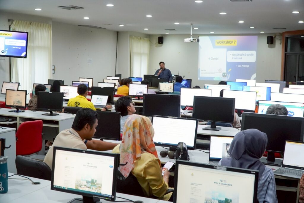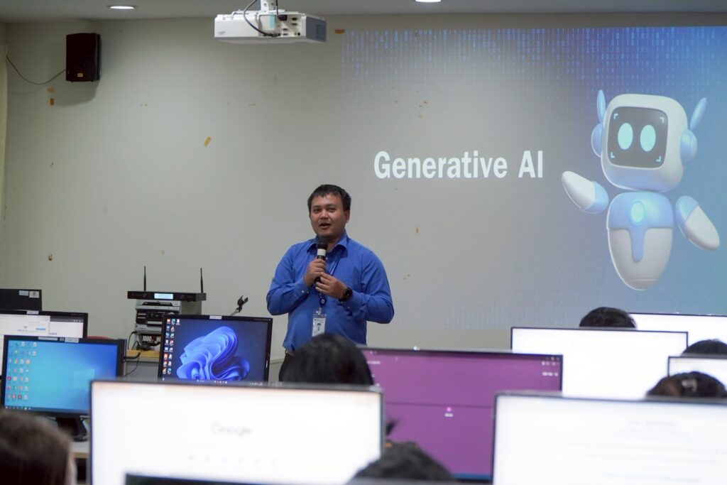 การอบรมเชิงปฏิบัติการ เรื่อง “AI เพื่อการทำงานยุคใหม่” วิทยากรโดย นายชารีฟ ลามาก และ นายวิษณุ เพชรประวัติ ณ ห้องคอมพิวเตอร์ 2 ชั้น 3 หอสมุดจอห์น เอฟ เคนเนดี้ เรียนรู้เรื่องพื้นฐาน Generative AI การเขียน Prompt อย่างมีประสิทธิภาพ และฝึกใช้งานเครืองมือ Gen AI ที่มีประโยชน์ในการทำงาน เช่น AI ที่ช่วยในการเขียนโครงการ แปลเอกสาร ช่วยร่างอีเมล เป็นต้น